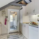 A refrigerator, a cooktop, and kitchenware are featured in a kitchen. Sonderborg airport is 25 km away from the Skovmose property.